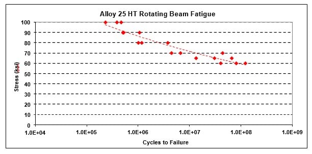 Figure 1. S-N Diagram Showing Fatigue Failure of Alloy 25 HT