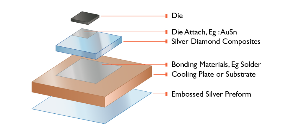 - Silver material with a thermal conductivity of 430 w/m K (ideal when applied between thermal spreaders/flanges and substrates)