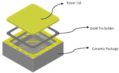 A typical electronic package being sealed with a Materion Combo-Lid Cover